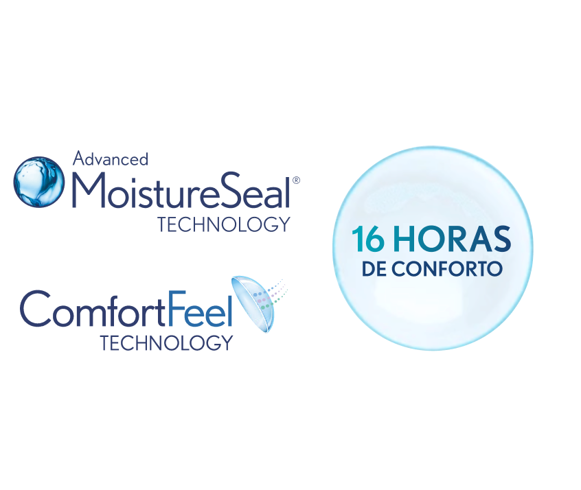 Com a tecnologia Advanced MoistureSeal + tecnologia ComfortFeel, para manter a hidratação das lentes durante 16 horas e favorecer o conforto e o bem-estar ocular.1,3
